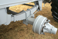 | Extra Heavy Duty 9 Leaf 100mm x 16mm (4" x 5/8") Sprung Pivoting Steering, Braked Axles | Hydraulic rams fitted to rear axle to allow bin to be reversed into sheds etc. | |
