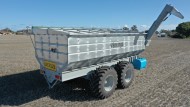 | Hydraulic controlled shut of doors cover sweep flight to prevent auger jam from compaction while traveling | 2 x Large viewing windows are fitted to the front of all 30 M³ Chaser Bins | Optional drop spout hose for filling sheep feeders, auger hoppers etc. | Hydraulic folding discharge chute and 1200 lumen LED work light fitted standard on all 30 M³ Chaser Bins |