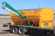 The Cole seed and super unit comes in a variety of sizes from 14' to 24' long. Ideal for air-seeders and combines alike, the longer top auger and bigger tube make the bin even easier to use. Discharging at a rate of over 500 kilograms of super per minute, filling an air-seeder or combine is a quick and hassle free experience.
