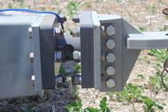 | Discharge auger is fitted with spring loaded flight in case auger is not in the correct position | Heavy Duty Gearbox with 1" Drive Sprockets | 30 M³ Chaser bin with auger folded and hydraulic folding discharge chute in lowered position |