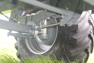 | Extra Heavy Duty 9 Leaf 100mm x 16mm (4" x 5/8") Sprung Pivoting Steering, Braked Axles | Hydraulic rams fitted to rear axle to allow bin to be reversed into sheds etc. | |