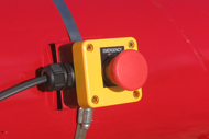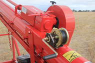 | Emergency Stop Switch fitted near intake end of auger | Large 31X10.5R15 6PLY Light Truck Tyres fitted to augers | Document holder attached to Auger holds motor and auger operating instructions |